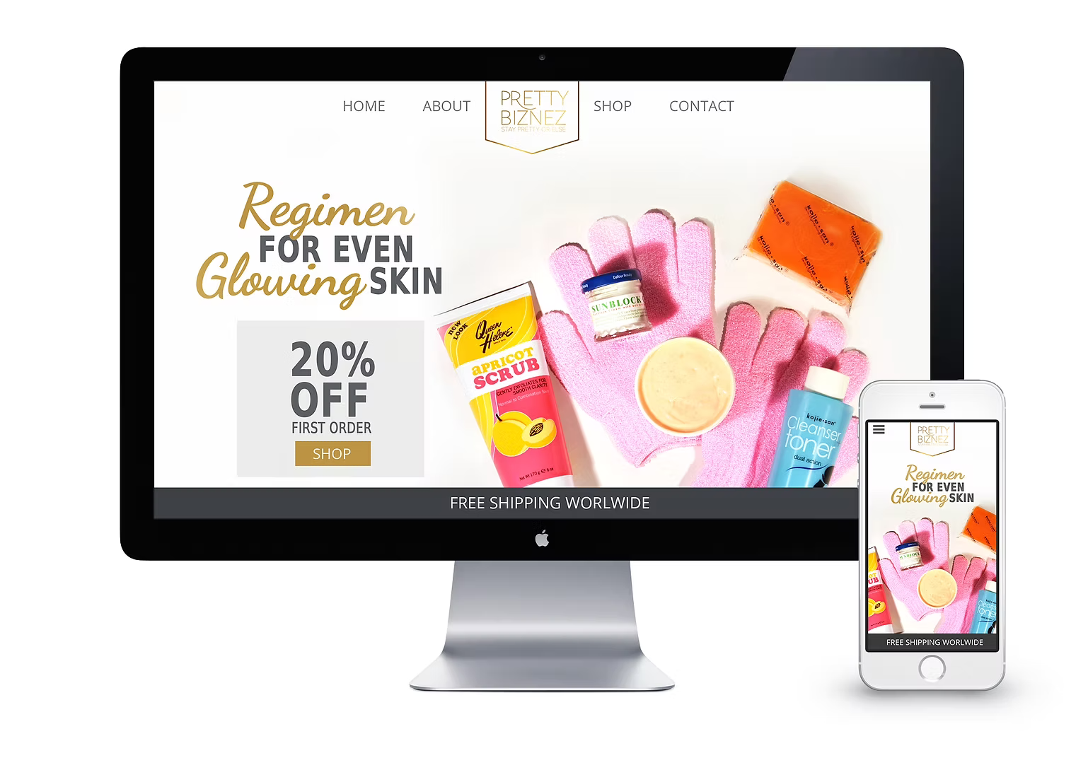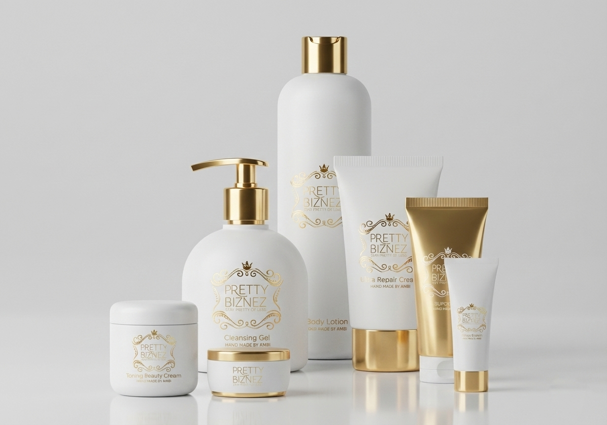 I rebranded Pretty Biznez with a luxury, modern aesthetic built around gold accents, clean typography, and high-end packaging design. The new visual identity extends across product labels, skincare packaging, and a fully redesigned website that highlights the brand’s glow-focused message. The result is a cohesive, elevated look that positions Pretty Biznez as a premium beauty and skincare line.
