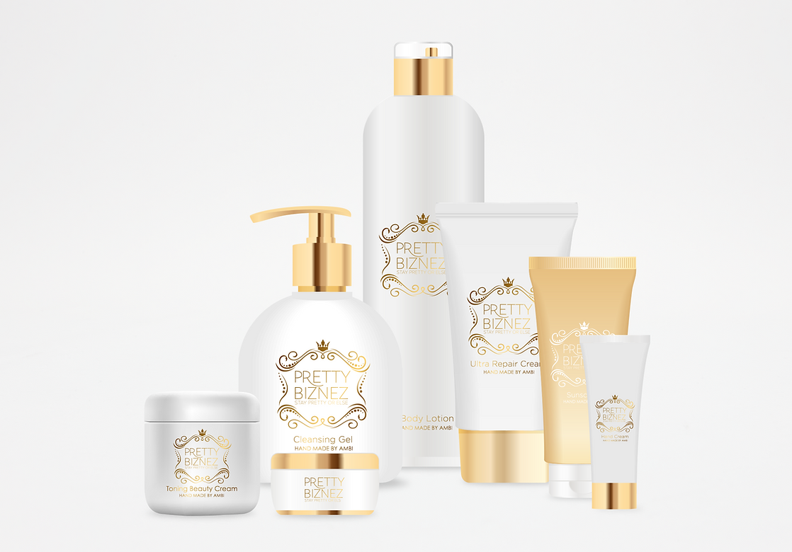 I rebranded Pretty Biznez with a luxury, modern aesthetic built around gold accents, clean typography, and high-end packaging design. The new visual identity extends across product labels, skincare packaging, and a fully redesigned website that highlights the brand’s glow-focused message. The result is a cohesive, elevated look that positions Pretty Biznez as a premium beauty and skincare line.