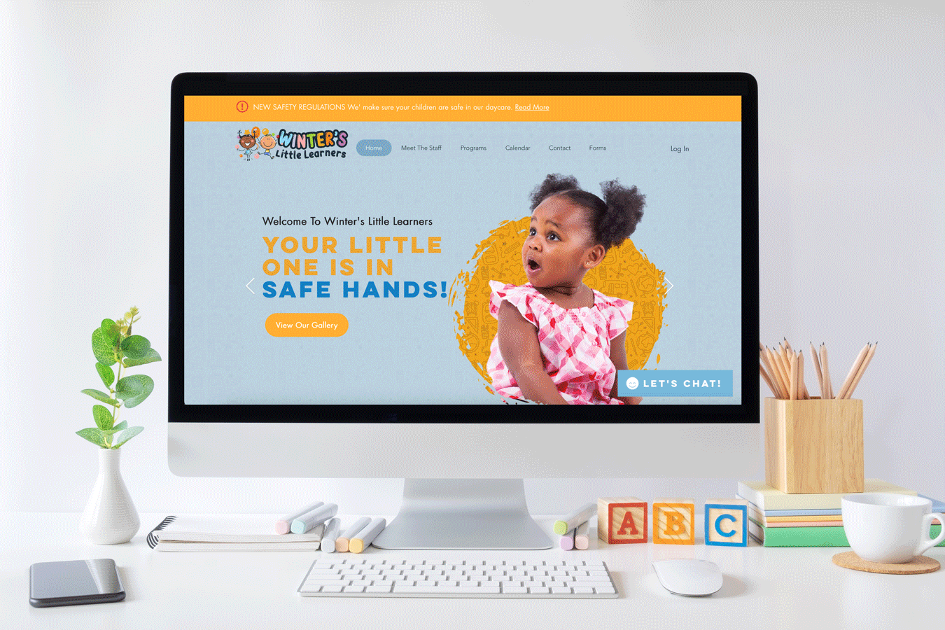 I created a playful, kid-friendly logo for Winter’s Little Learners, using bright colors and illustrated characters to reflect joy, learning, and inclusivity. The website expands on that identity with a warm, welcoming design featuring soft patterns, bold typography, and engaging imagery.